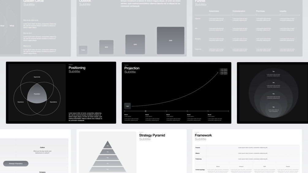 You'll get 48 customisable slides (White, Grey & Black combined)